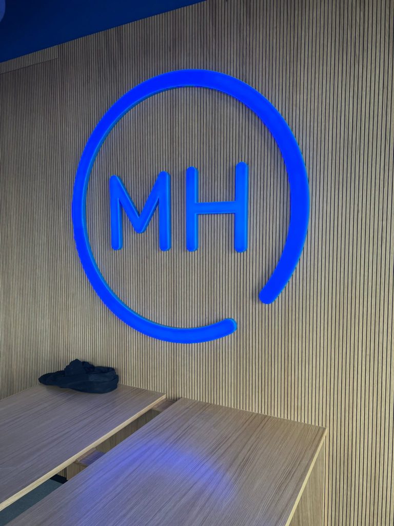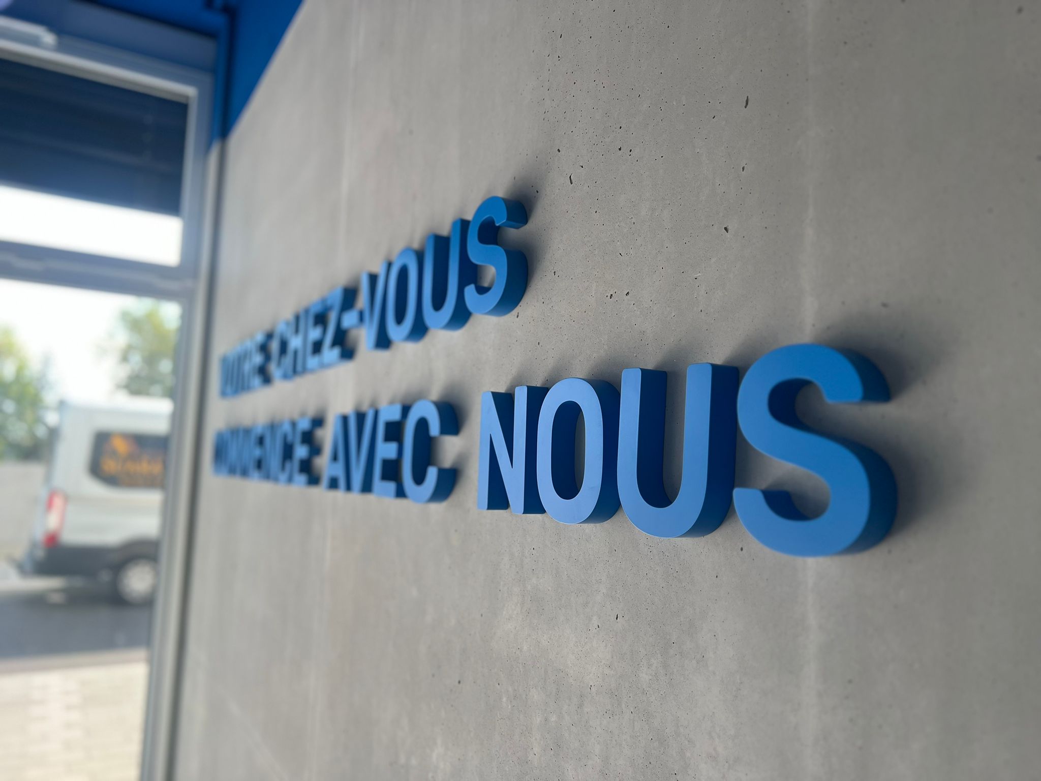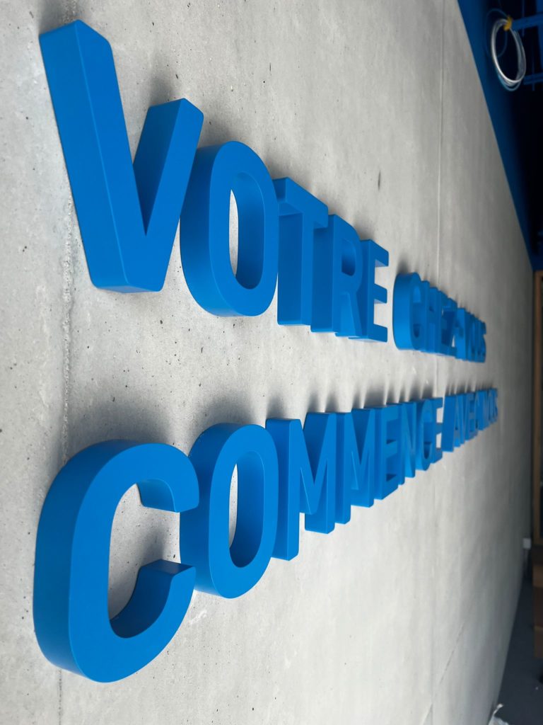 To do this, Nmk-pub created a luminous sign with indirect lighting, which gives the front of the agency a chic and warm atmosphere. A second sign with a neon tube effect and direct lighting brings a contemporary touch, perfect for attracting attention in the evening. The Nmk-pub team also installed non-illuminated 3D letters to display the MyHome slogan, adding a subtle and aesthetic relief to the facade. Finally, an aluminum sign with a personalized adhesive completes this layout, offering clear and neat communication.