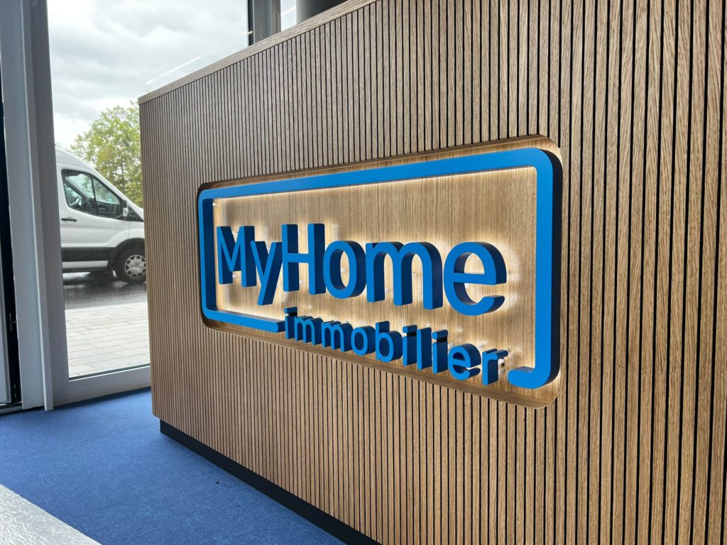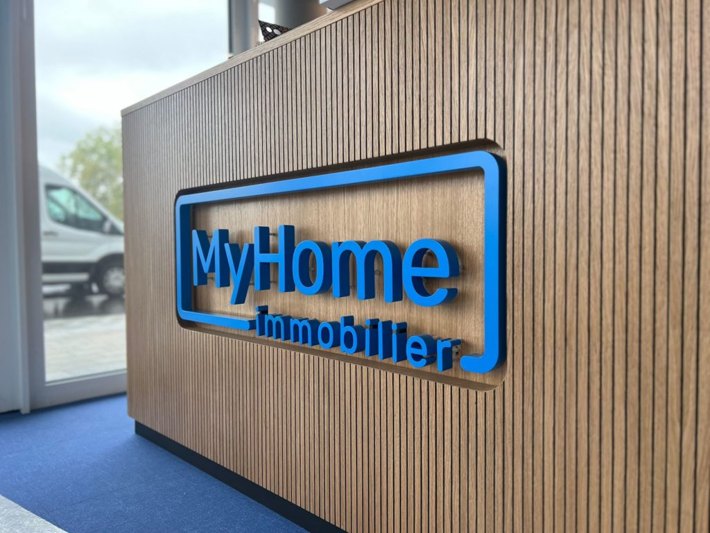 MyHome, a real estate agency active in sales and rentals, decided to call on Nmk-pub for a major signage project. The challenge: to create custom signage that combines elegance and visibility.
