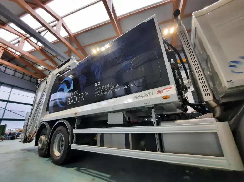 Grâce à l’expertise de NMK-Pub dans l’impression et la pose d’autocollants, les camions du Groupe Bader arborent désormais un look professionnel et accrocheur. Qu’ils sillonnent les routes ou se rendent sur les sites de collecte, ces véhicules deviennent de véritables ambassadeurs de la marque, attirant l’attention des clients potentiels et renforçant la visibilité de l’entreprise.