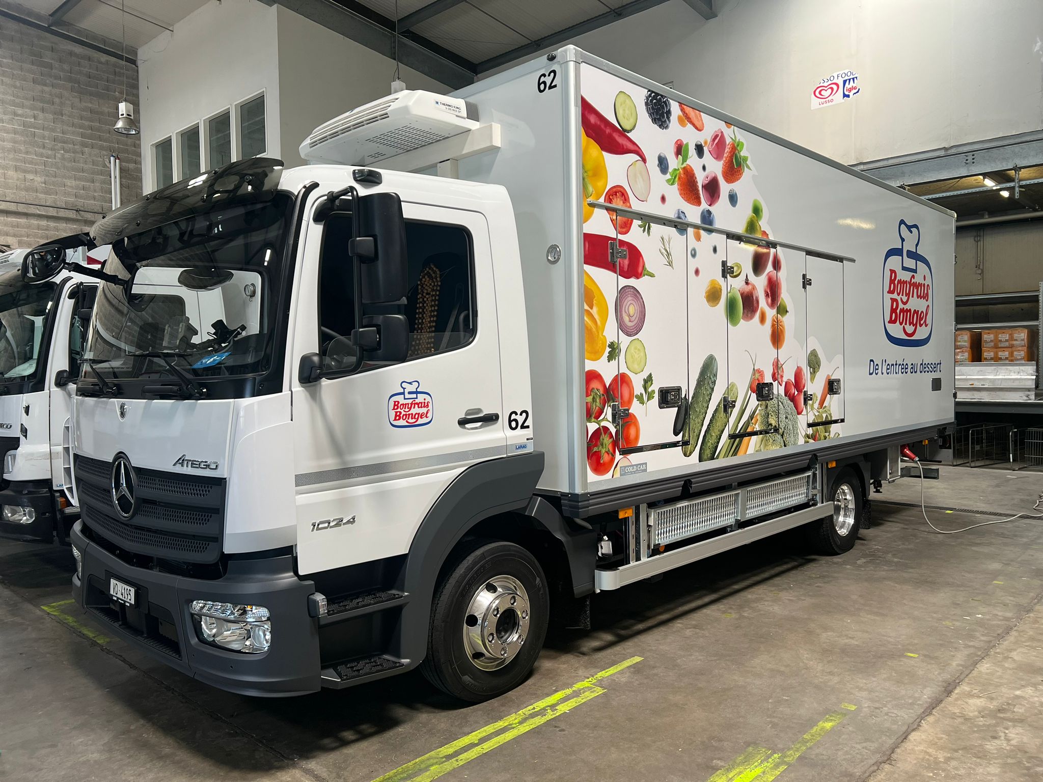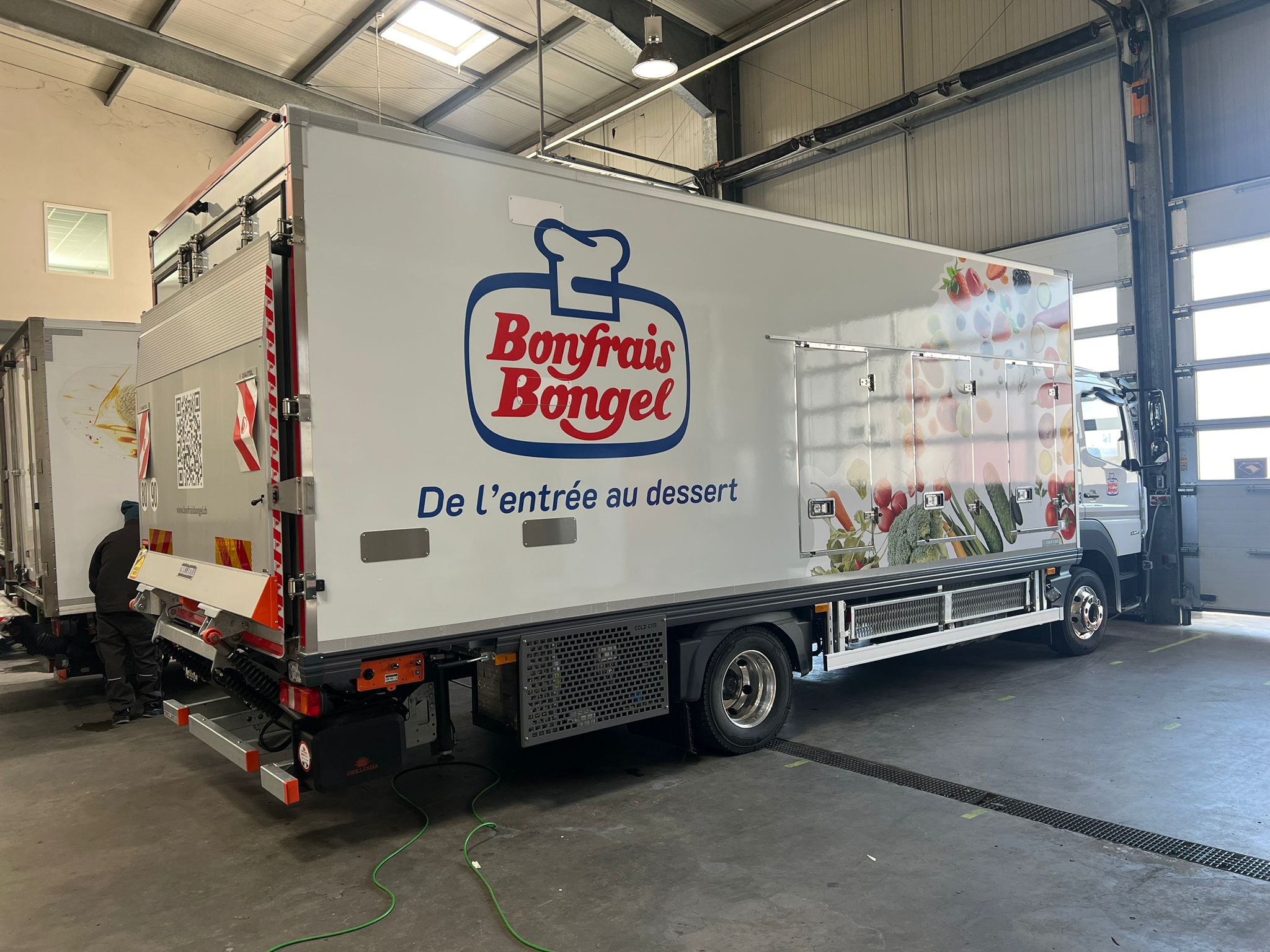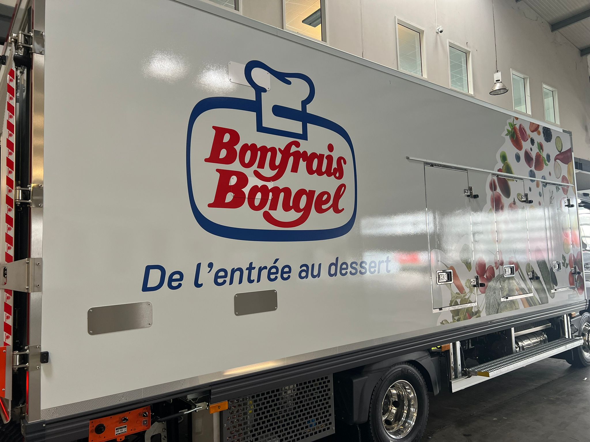 Bonfrais Bongel, acteur majeur de la distribution de produits frais et surgelés, a récemment confié à Nmk-pub l’habillage de sa nouvelle flotte de cinq camions bi-températures . La mission : concevoir des visuels percutants pour chaque véhicule, en intégrant le logo de Bonfrais Bongel et en veillant à une cohérence visuelle sur l’ensemble de la flotte. Les adhésifs ont été posés avec soin , garantissant une finition impeccable et une visibilité maximale sur les routes.
