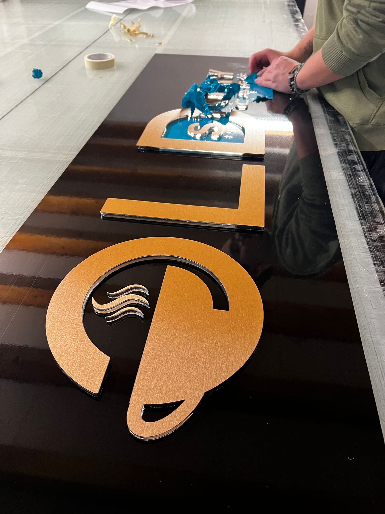 Une fois le travail terminé en atelier, les lettres ont été posées sur place, conférant à la devanture du café une allure élégante et attrayante grâce à notre expertise en pose d’enseignes .