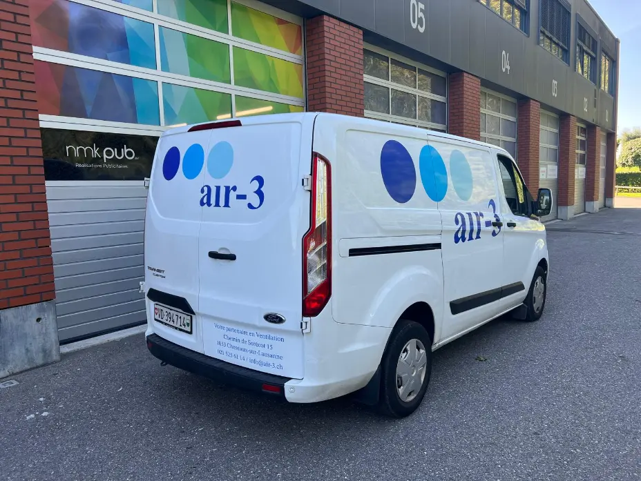Nmkpub a récemment collaboré avec Air-3 SA, une entreprise spécialisée en ventilation de bâtiments, pour améliorer la visibilité de leur flotte de véhicules. Nous avons conçu et posé des autocollants sur mesure, intégrant le logo distinctif et les coordonnées couleurs de l’entreprise.
